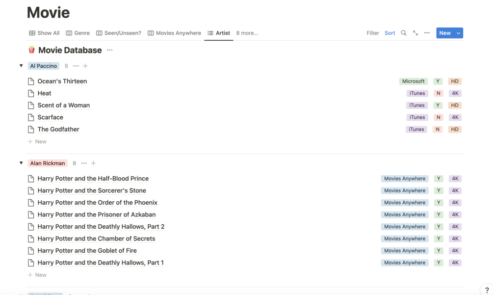 I you love movies, and have a personal collection, that you want to keep track on, you will love this. This fully packed notion template contains prefilled data with thumbnails for more than 500 movies. You just need to add if you own a movie, which platform has it, the data base will show you different views. You can keep track of your owned movies, the wished ones etc.
