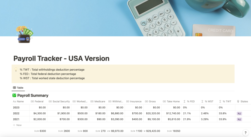 Payroll Tracker - USA Version