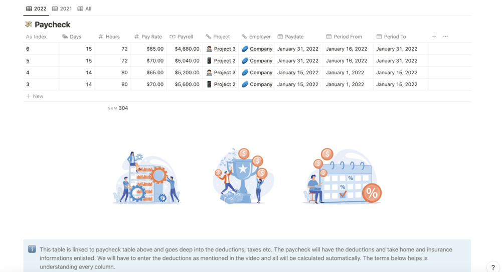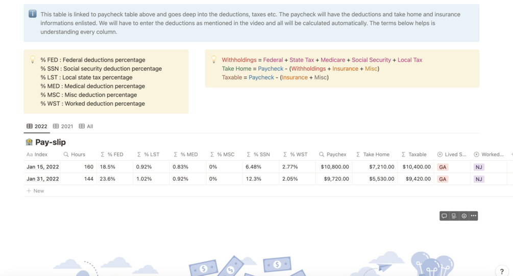 Track your paychecks and keep tapping into how much you are paying tax for the federal, social security, medicare, and state sector. Compare companies, projects, and years in terms of take-home and withholdings.